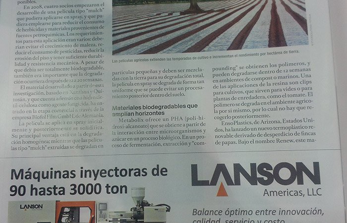 據(jù)官方公布數(shù)據(jù),今年P(guān)LASTIMAGEN MEXICO 2014共吸引參展商850家,觀展人數(shù)達(dá)30,000人次。聯(lián)升54m2的展位被前往了解、咨詢的用戶圍得水泄不通。此外,我們?cè)谡桂^顯眼位置懸掛了聯(lián)升的宣傳海報(bào),并在拉美地區(qū)最具影響力的塑料雜志TECNOLOGIA DEL PLASTICO登了廣告,借此媒介進(jìn)一步提高聯(lián)升的品牌知名度與影響力。